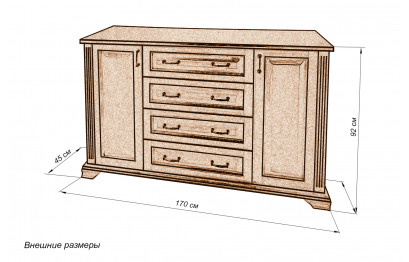 Комод из серии Грета ящики с дверкой (сосна,резьба береза)