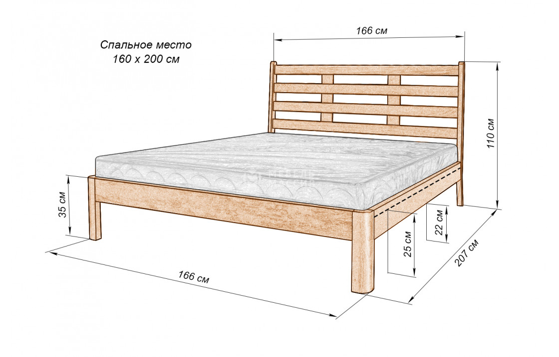 Кровать Морфей имеет минималистичный дизайн: высокое реечное изголовье, отсутствующее изножье и высокие устойчивые ножки. Изделие, которое можно купить по демократичной цене в нашем интернет-магазине, изготовлено из экологически чистого древесного массива и покрыто защитным лаком. Осуществляется доставка на дом по Мурому и Владимирской области .| Размер | Цена | |