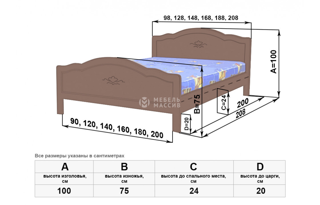 Кровать Сонька имеет выдержанные в едином стиле волнообразные спинки, украшенные аккуратными узорами, и длинные устойчивые ножки. Изделие, которое можно купить по демократичной цене в нашем интернет-магазине, изготовлено из экологически чистого древесного массива и покрыто защитным лаком. Осуществляется доставка на дом по Мурому и Владимирской области .| Размер | Цена | |